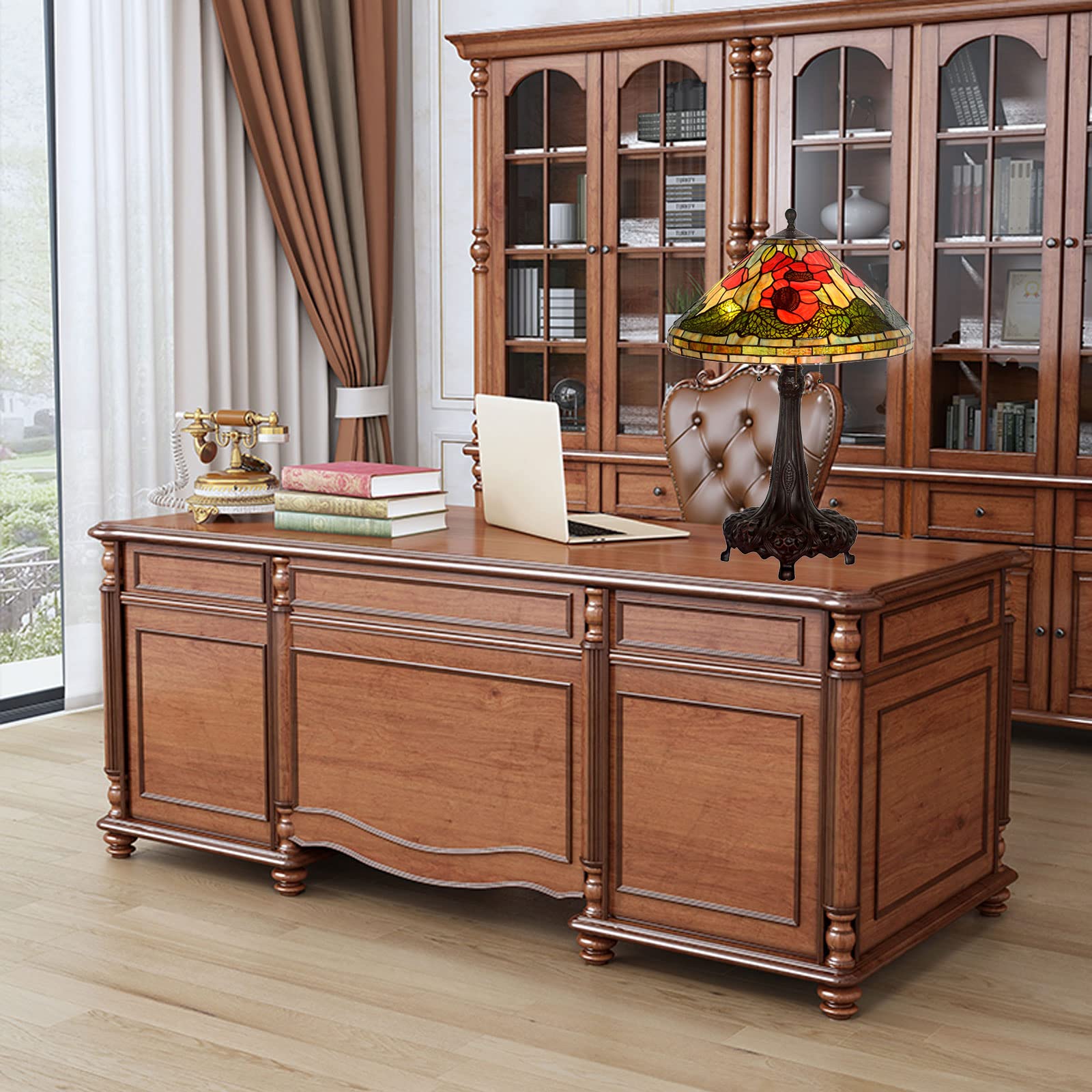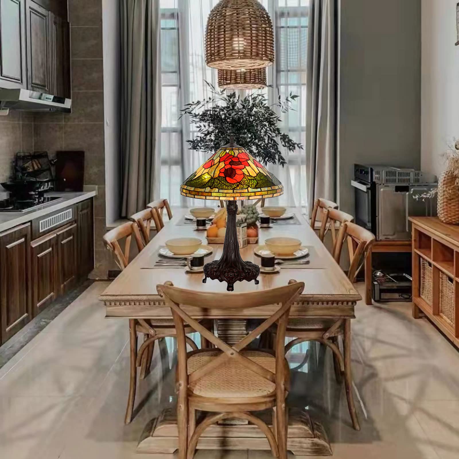 CAPXXIN Tiffany Retro Tischlampe Buntglas Mohnblumen Design Vintage Nachttischlampe Schlafzimmer Wohnzimmer Zinklegierung Handgefertigt